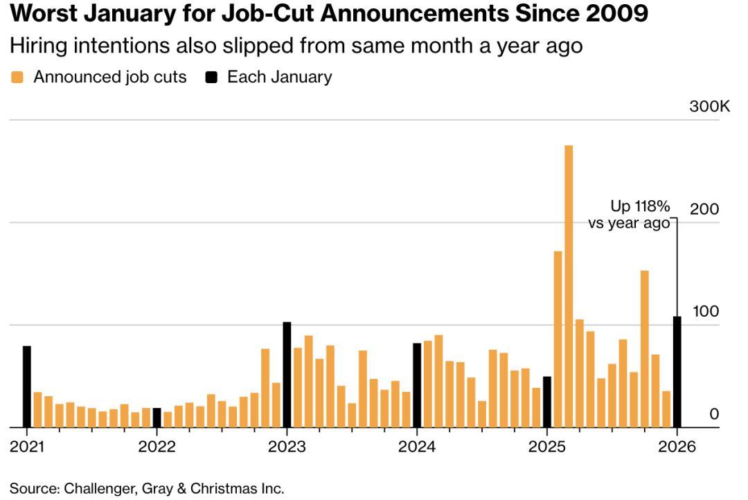 仅在今年1月份,美国企业就宣布裁员超过10.8万人。